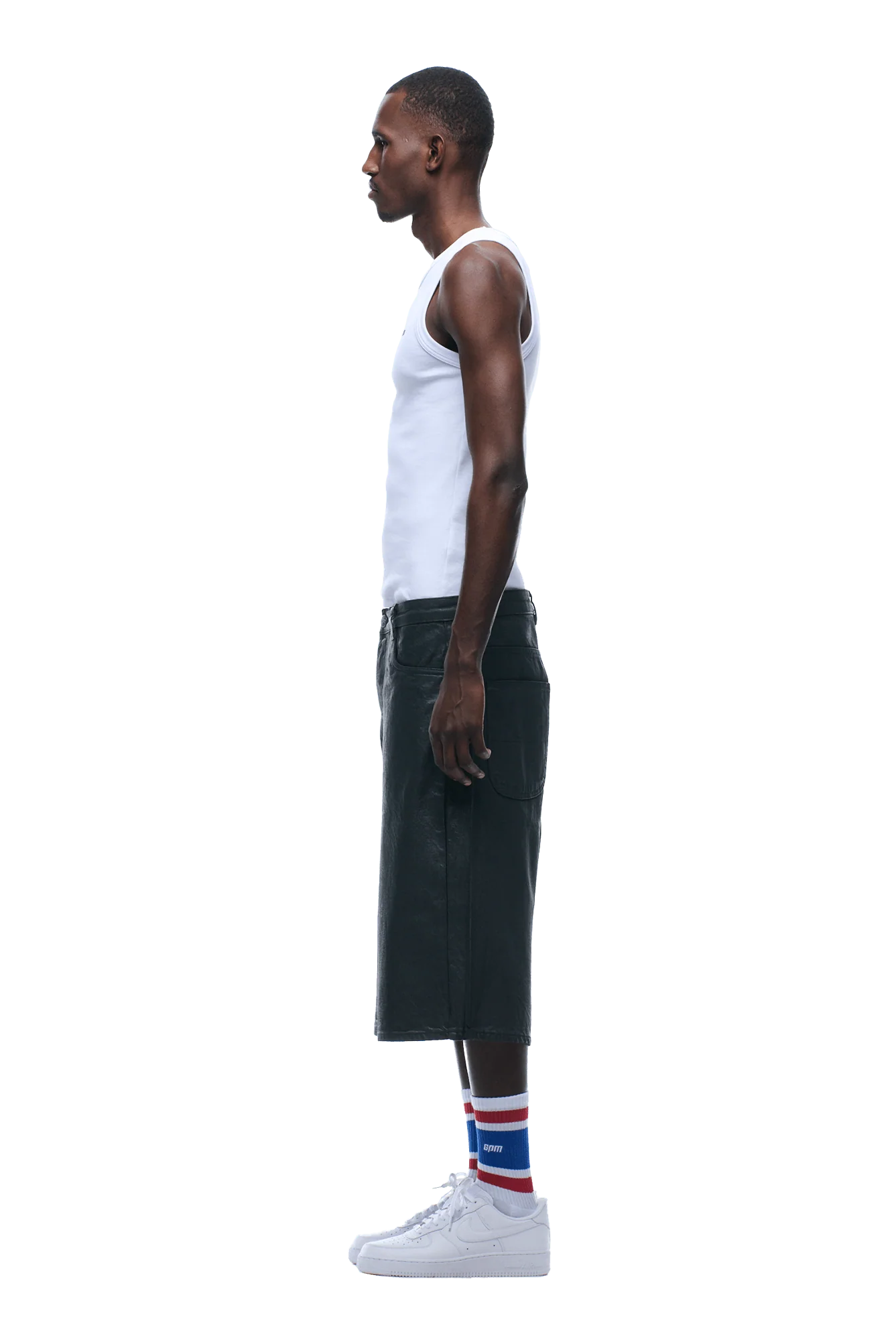 COATED DENIM SHORTS BLACK