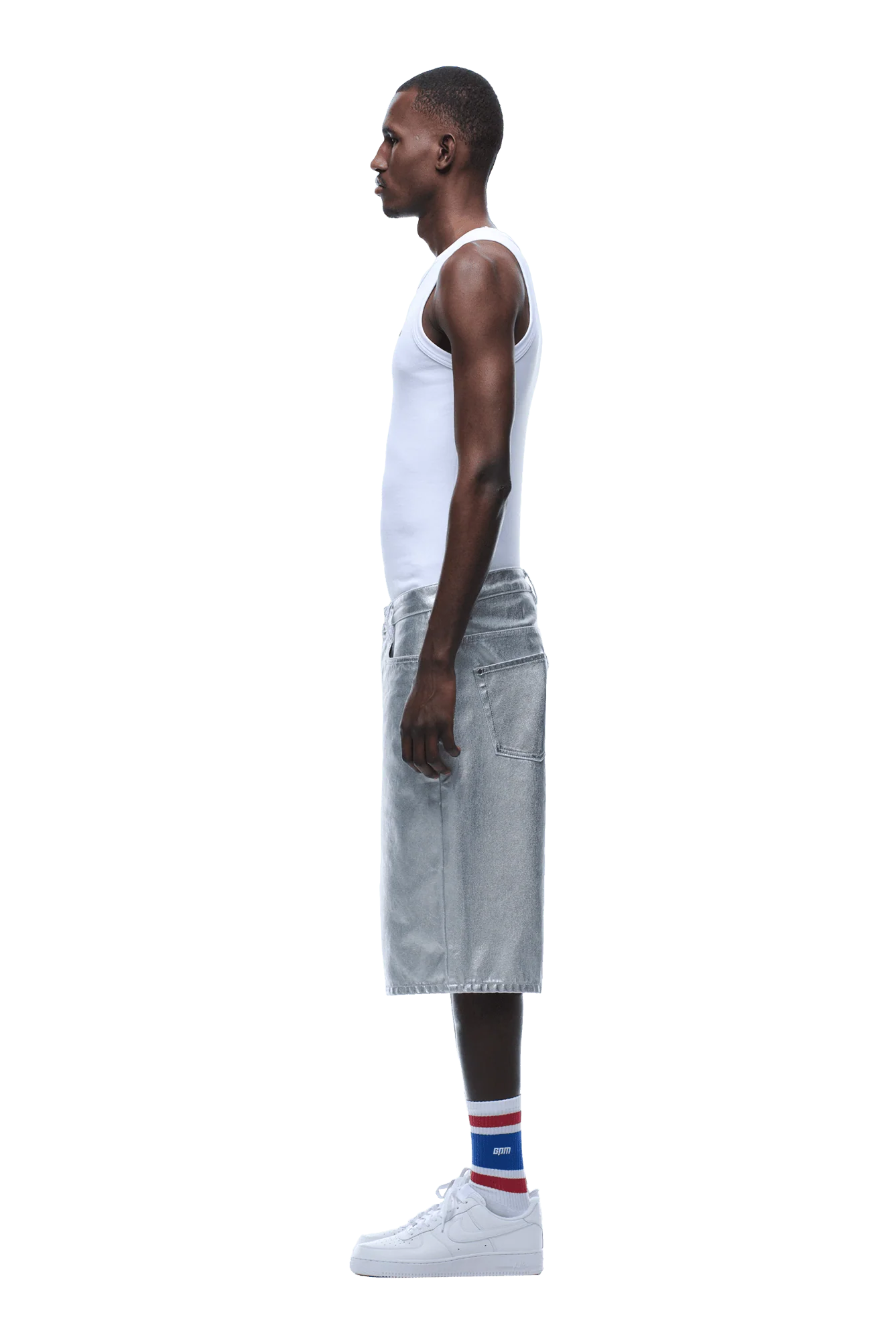 COATED DENIM SHORTS SILVER SURFER