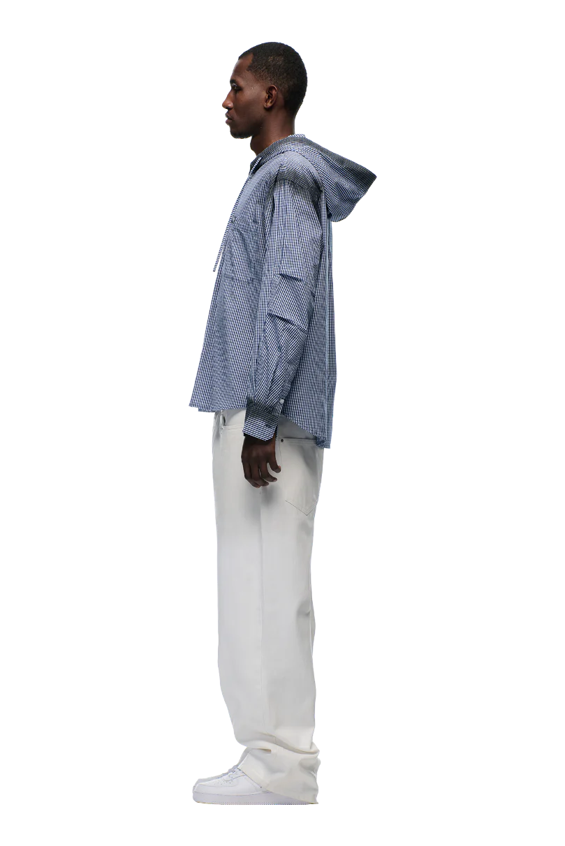 HOODED DRESS SHIRT DEEP SEA BLUE/WHITE